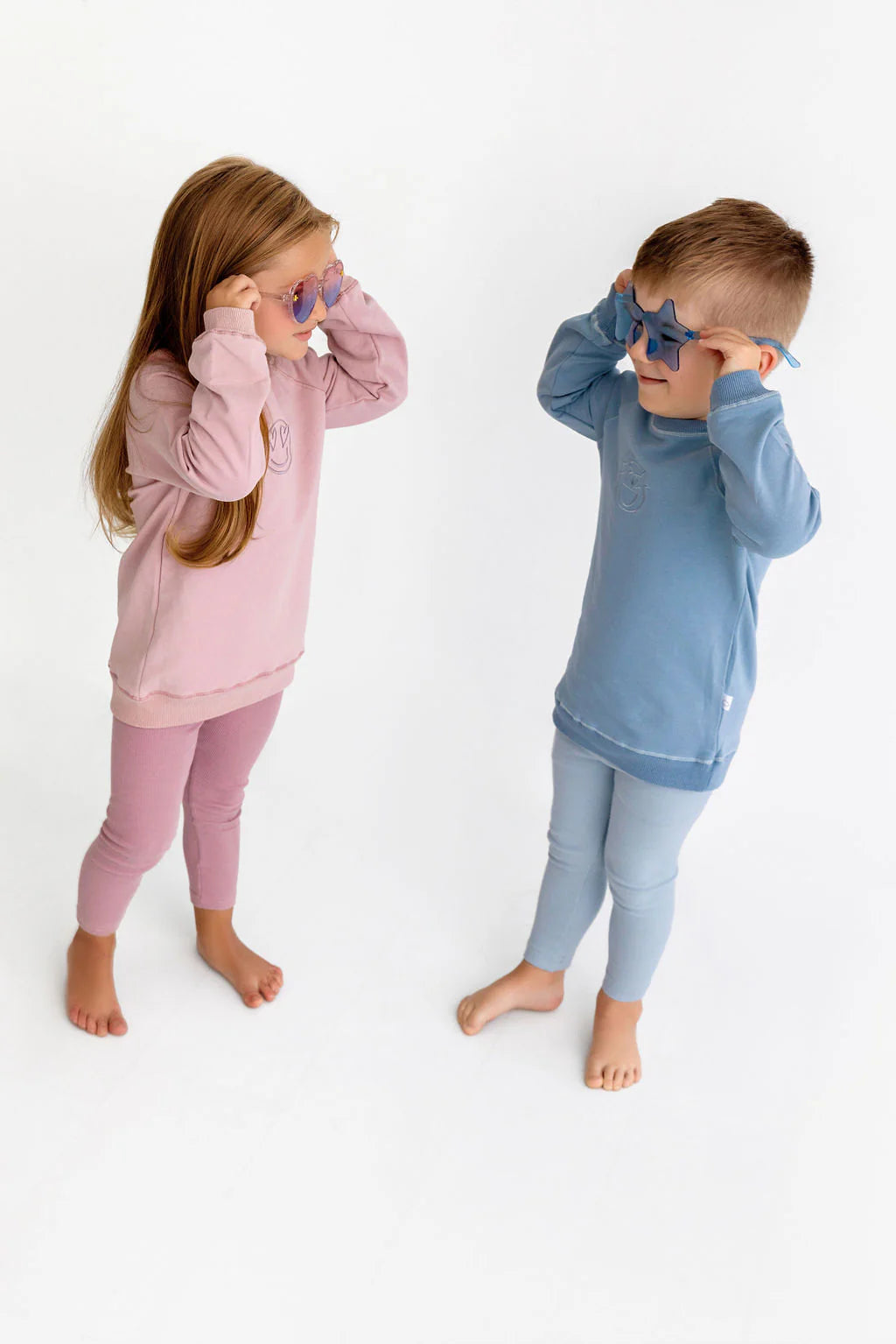 This buttery soft Mauve Emoji Set is perfect for both lounging and heading out! With an adorable embroidered emoji and an oversized French terry sweater paired with matching ribbed leggings, your kids will live in this set. Comfort meets style in this must-have addition to any wardrobe!